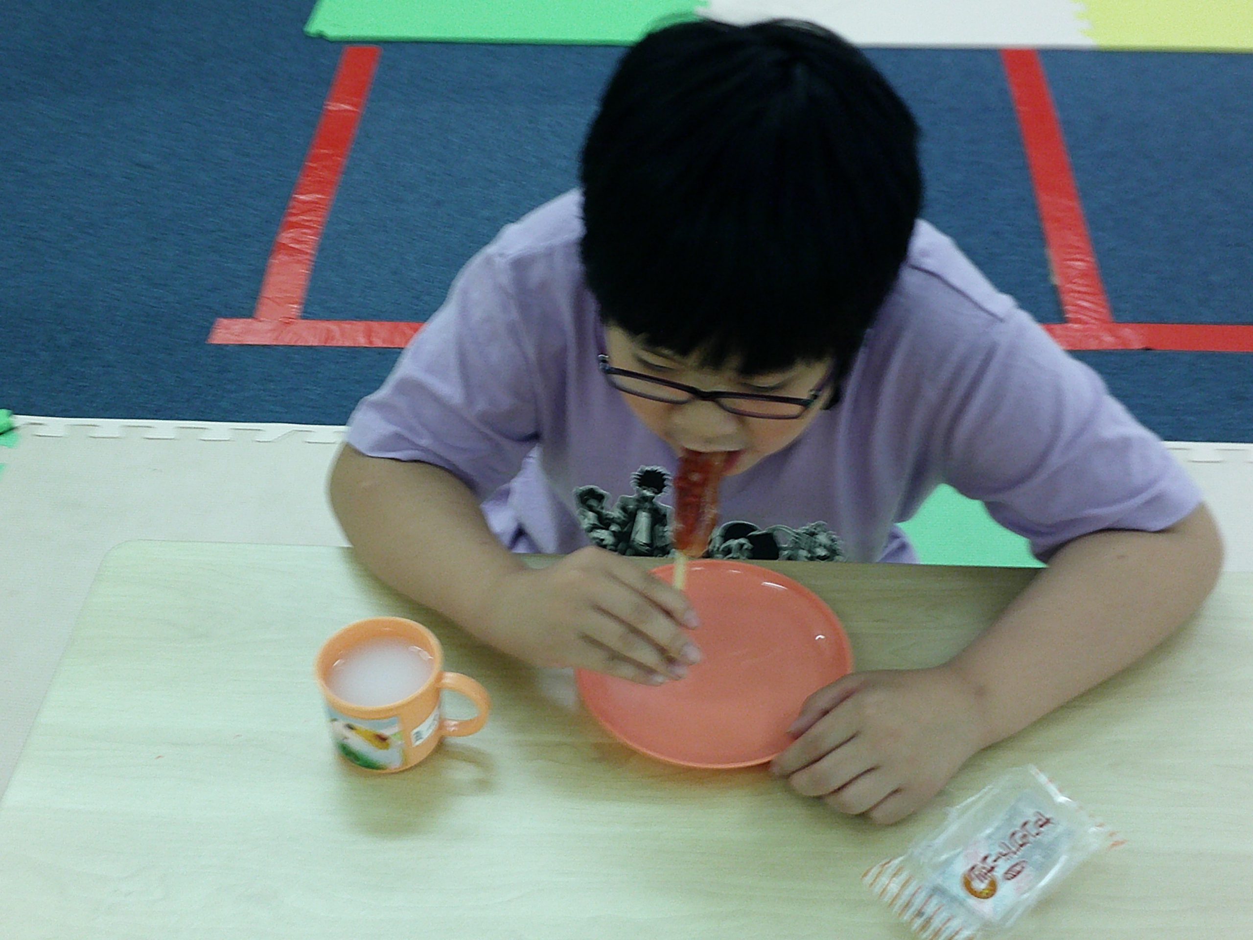 おやつの時間に、お互いに自己紹介をして名前と顔を覚えます(*^▽^*)
