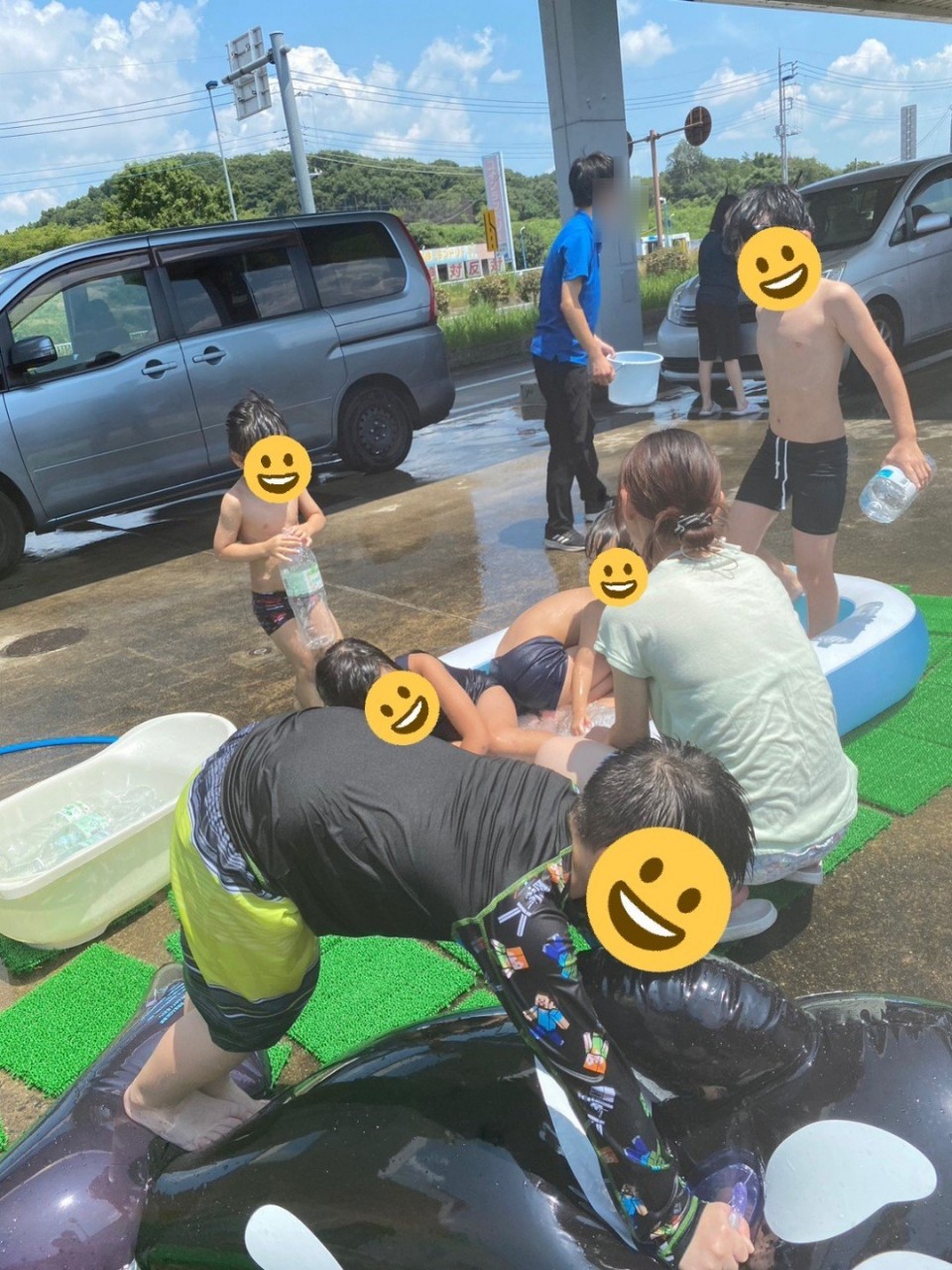 ということで児発、小学生の児童たちはプールに入り、中学生以上の児童たちには洗車を行ってもらいました💧