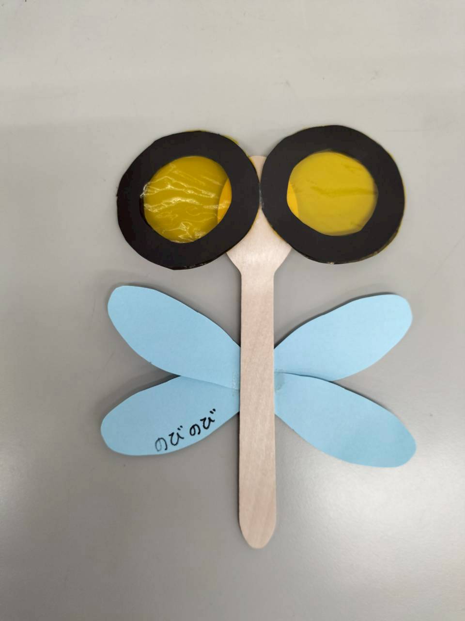 「とんぼのめがねはみずいろめがね♪」と歌いながら、完成した作品に大満足の子ども達でした。
