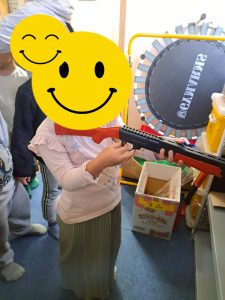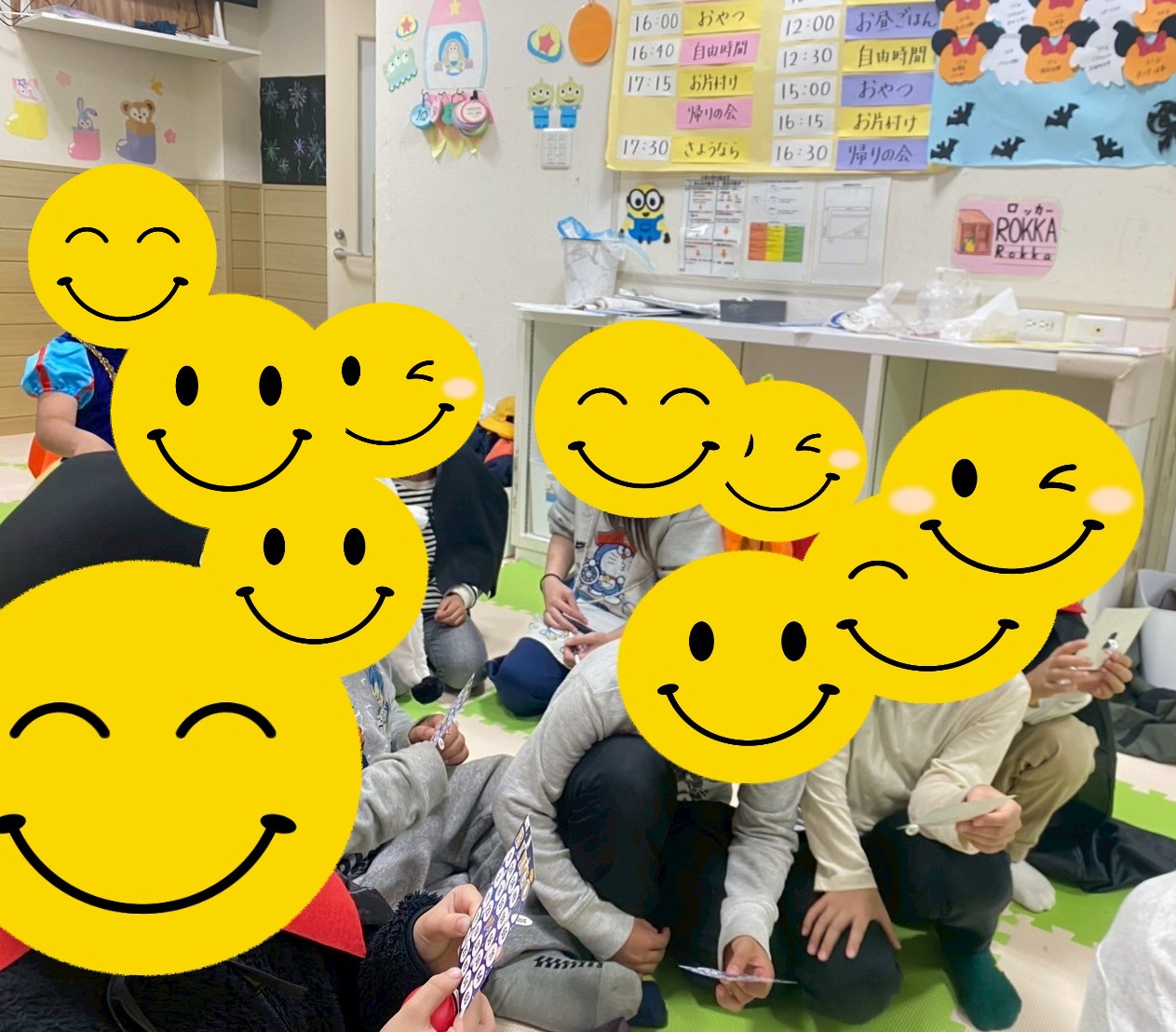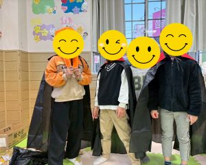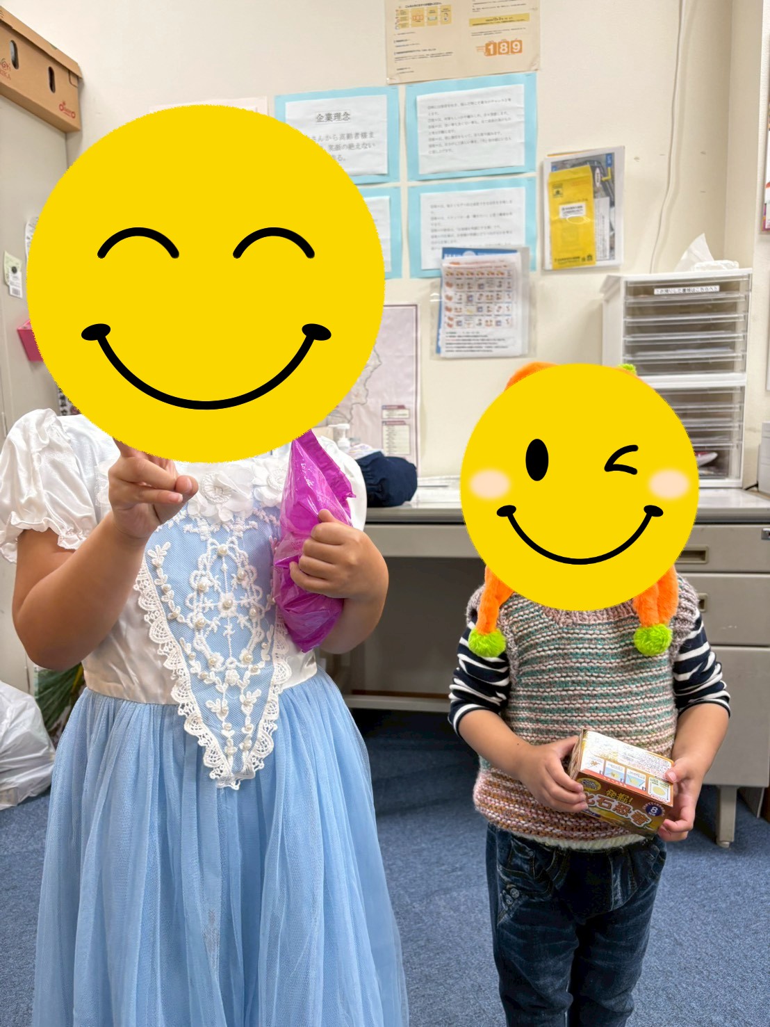 みんなでハロウィンの仮装をしてから、ダンボール迷路に挑戦したり、射的ゲームやビンゴ大会をしました☆