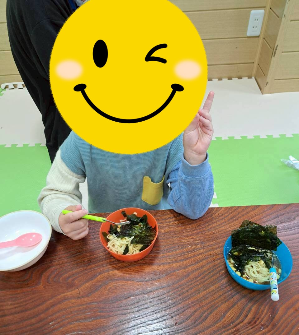 ラーメンにそれぞれ好きな具材を乗せて、みんなで美味しく食べました(^^)/