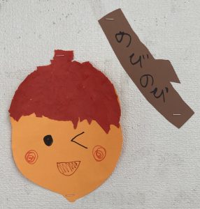 制作では、どんぐりの壁面を制作しました。