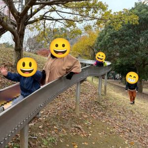 到着するとまず目についたのは大きな滑り台✨児童たちは荷物を置いたらすぐに遊び始めました。