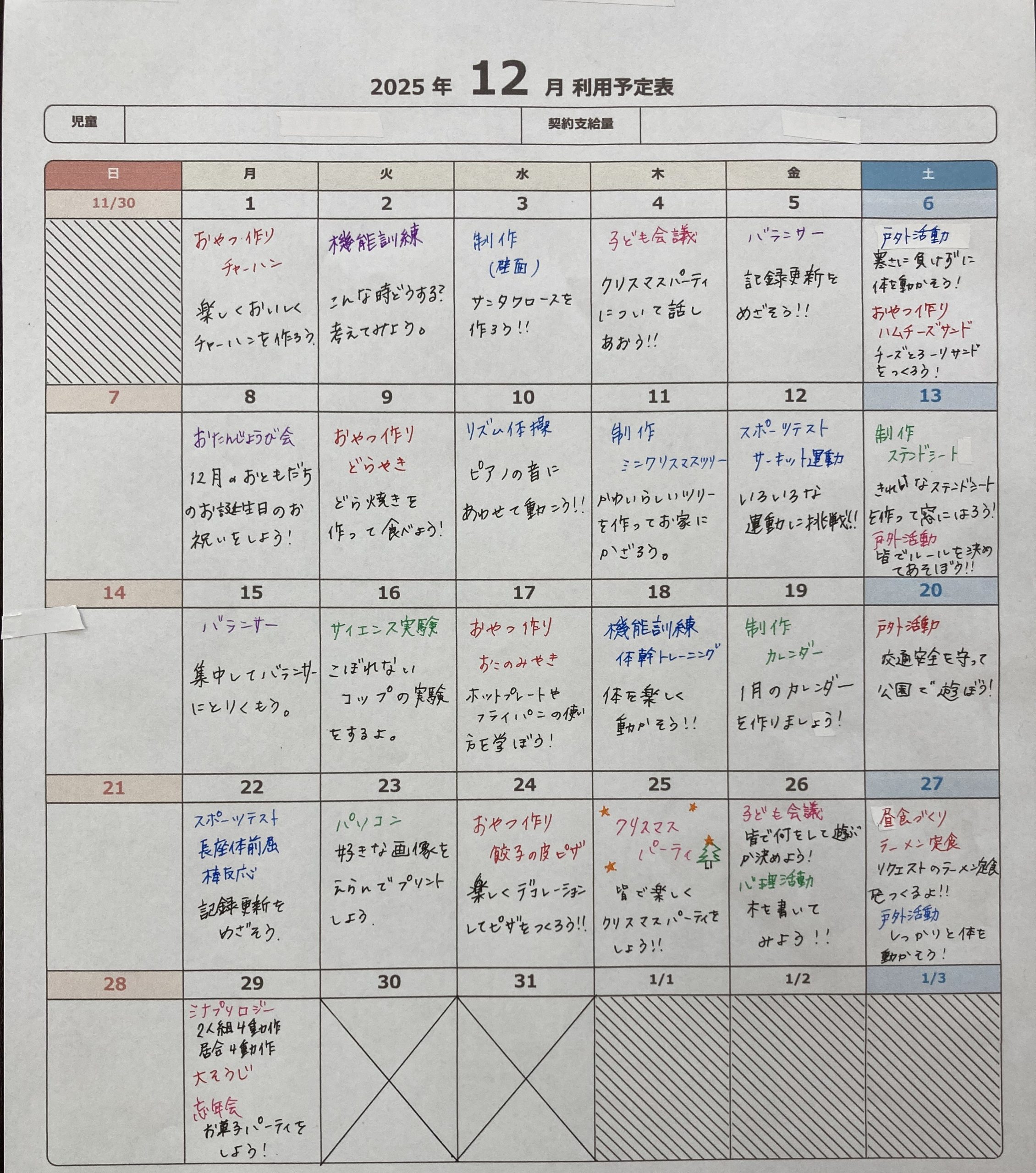 12月はついに冬休みに突入です!25日のクリスマスパーティは事前に子供たちで内容を話し合い、みんなで作り上げていきます!