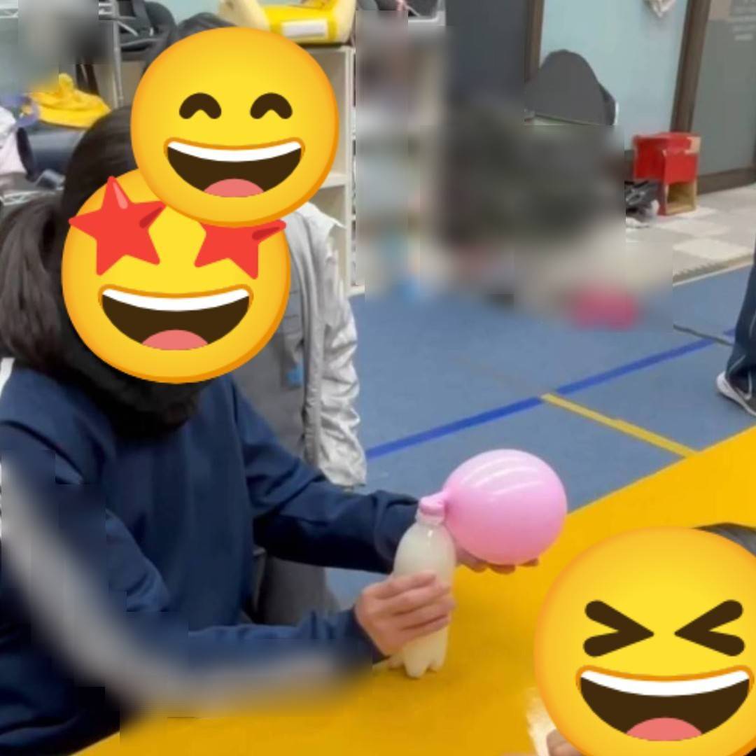 この日はお酢と重曹を使って、風船を膨らませる実験を行いました✨