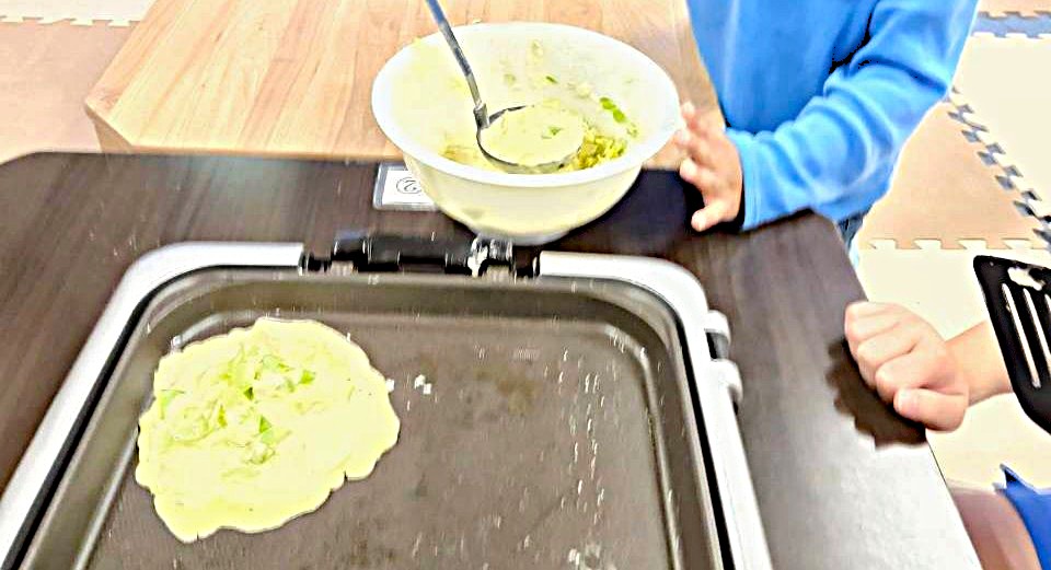 続いてはおやつづくりです。今回はお好み焼きを作りました。