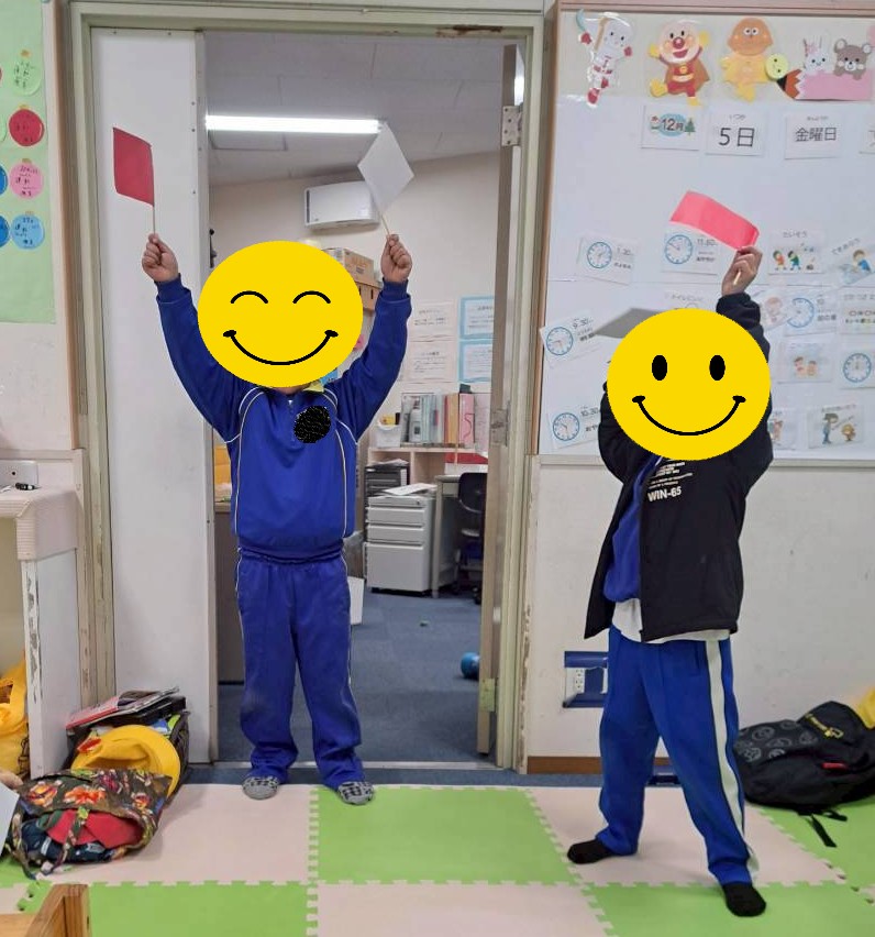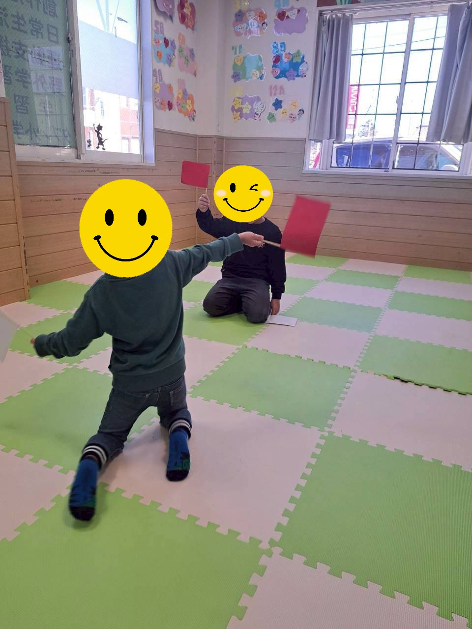 最初に職員が指示を出した後に、子ども達にもみんなの前で1人ずつ先生役として他の子に指示を出してもらいました!(^_^)