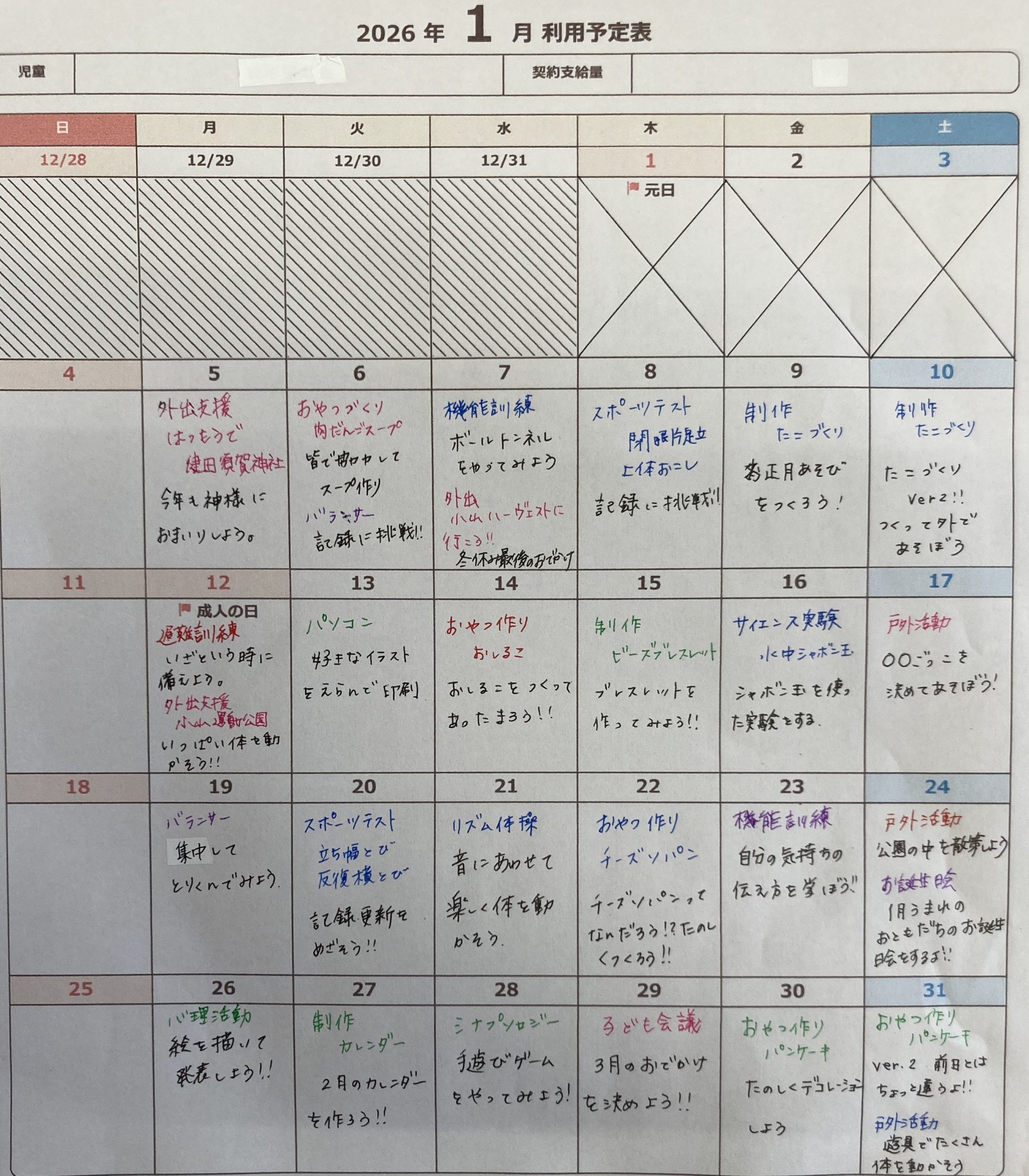 まずは1月の予定の公開から、冬休み期間中の子供たちも、全力でイベントを楽しんでいました!